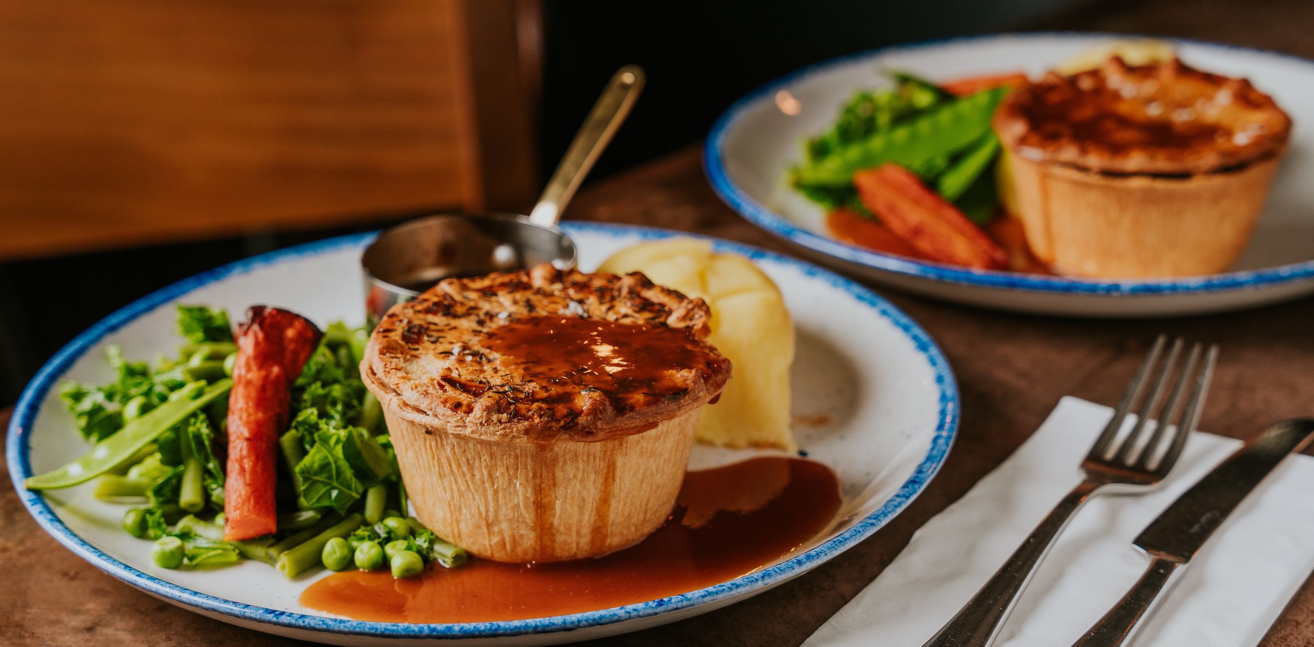 With comfort food restaurant staples like melt-in-your-mouth fish and chips, to hearty helpings of sausage and mash served alongside rich red onion gravy, you’ll be sure to find your favourites across our traditional menu.